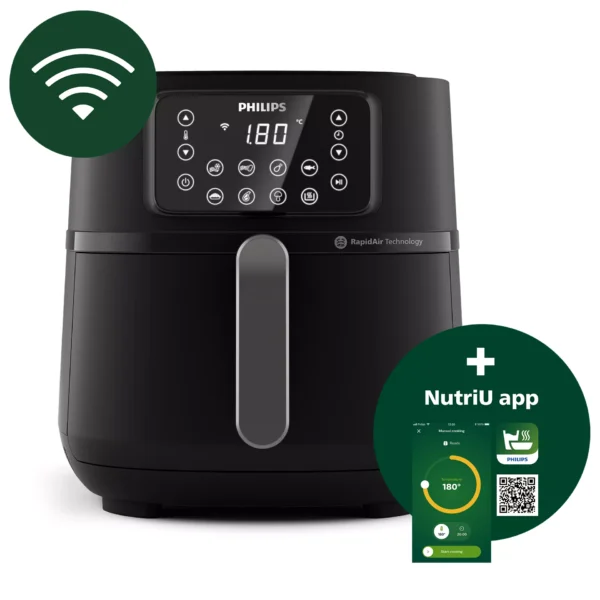 فيليبس قلاية هوائية 5000 حجم XXL سعة 7.2 لتر (1.4 كجم) 6 أجزاء قلاية هوائية 16 في 1 متصلة بالواي فاي دهون اقل بنسبة 90% مع تقنية الهواء السريع تطبيق وصفات (HD9285 91) أسود 7.2 ليتر 2000.0 واط