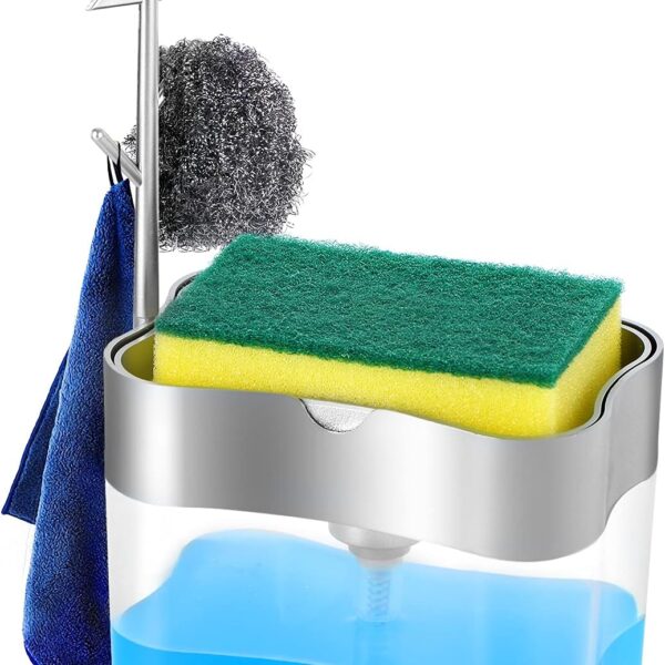 موزع صابون الاطباق المبتكر للمطبخ، وحامل اسفنجة 2 في 1، وعلبة مضخة لموزع الصابون على سطح الطاولة