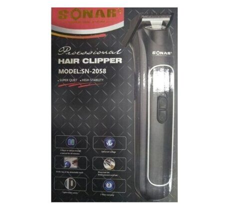Sonar Hair Clipper SN-2058 is a professional-grade hair clipper designed for at-home grooming. It features sharp, durable blades for precise haircuts and trims. With an ergonomic design, it is easy to handle and ensures smooth operation. The clipper offers multiple length settings for versatile styling and comes equipped with various accessories, including guide combs and a cleaning brush, making it suitable for all hair types. It’s an ideal tool for maintaining your haircut between barbershop visits.