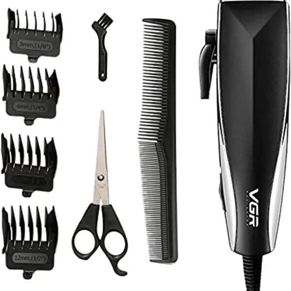 The VGR Hair Clipper Set has everything you need for grooming essentials. This set includes a hair clipper, a comb, scissors, and clipper heads. These tools make your grooming routine hassle-free.