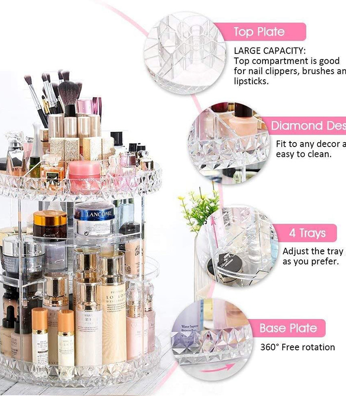 Makeup Organizer,Adjustable Multi-Function Cosmetic Storage Box Make Up Display Stand, with Large Capacity,Fits Different Types of Cosmetics and Accessories