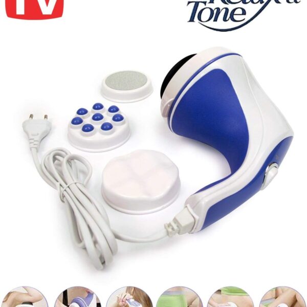 Brand: Relax & Spin Tone Type: Full-body slimming massager Target Use Body Part: Body Power Source: Corded Electric Material: Acrylonitrile Butadiene Styrene Special Features: Strong Massager Form: Massage Wand Specific Uses For Product: Full Body Product Benefits: Body Slimming The Relax & Spin Tone Hand-held Full Body Slimming Massager is designed for body toning, slimming, and muscle relaxation. Its ergonomic, hand-held design makes it easy to target specific areas such as the arms, thighs, and waist. The massager uses vibrations to improve circulation and break down fat cells, while providing a soothing massage to relax muscles. It comes with multiple attachments, making it versatile for different massage needs. This product is ideal for those looking for a convenient at-home solution to body toning and relaxation. Designed and engineered following the curves of the body Light, practical, convenient, easy way to exercise and relax Unique rapid rotation and powerful massage take away aches and pains Slimming, toning, and relaxation, all in one amazing device. Relax tone with 4 Heads attachments Pack it anywhere, anytime to relax your muscles