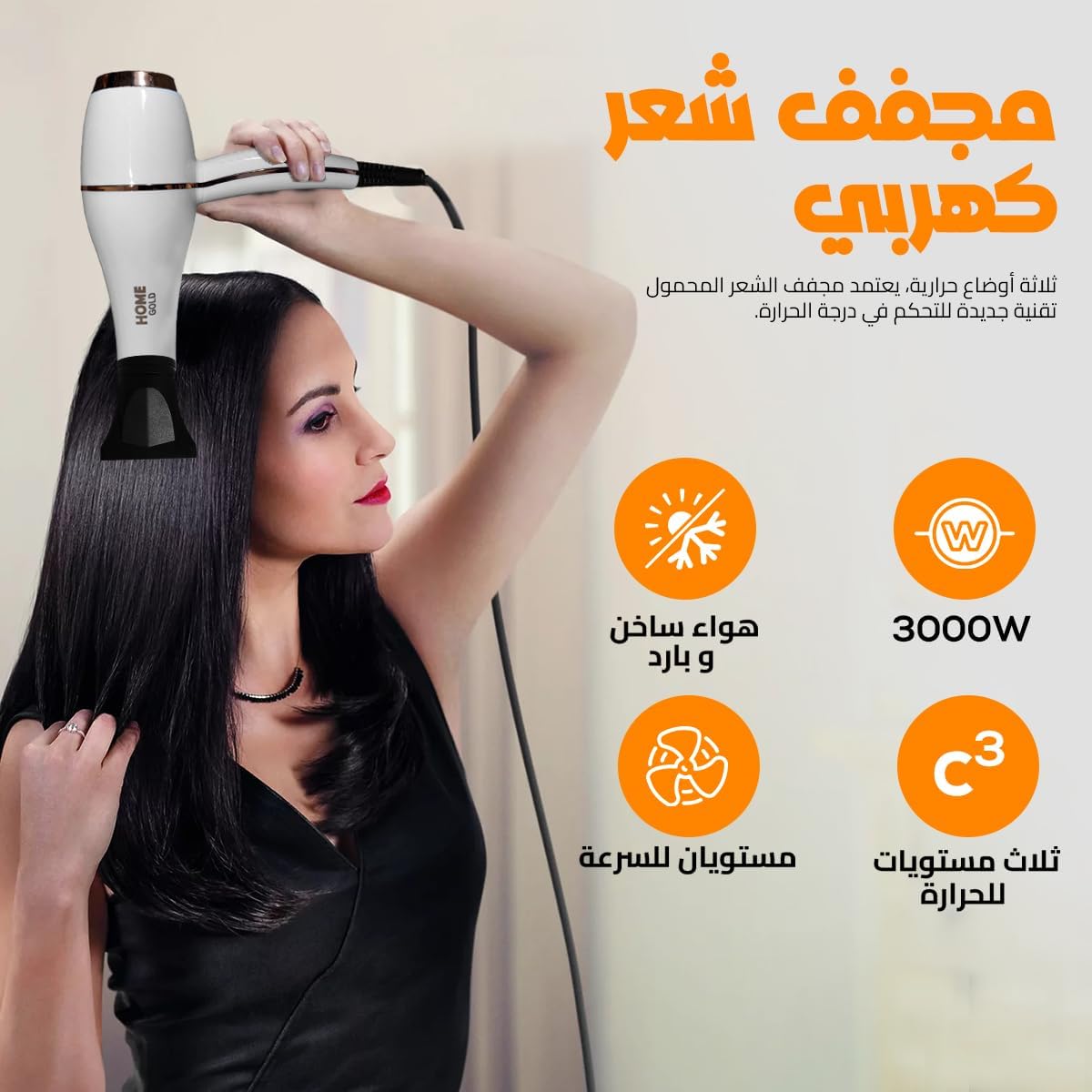 Unleash your inner stylist with the HOME GOLD Professional Hair Dryer! This powerful 3000W dryer delivers exceptional drying performance for even the thickest hair, leaving you with smooth, frizz-free results.