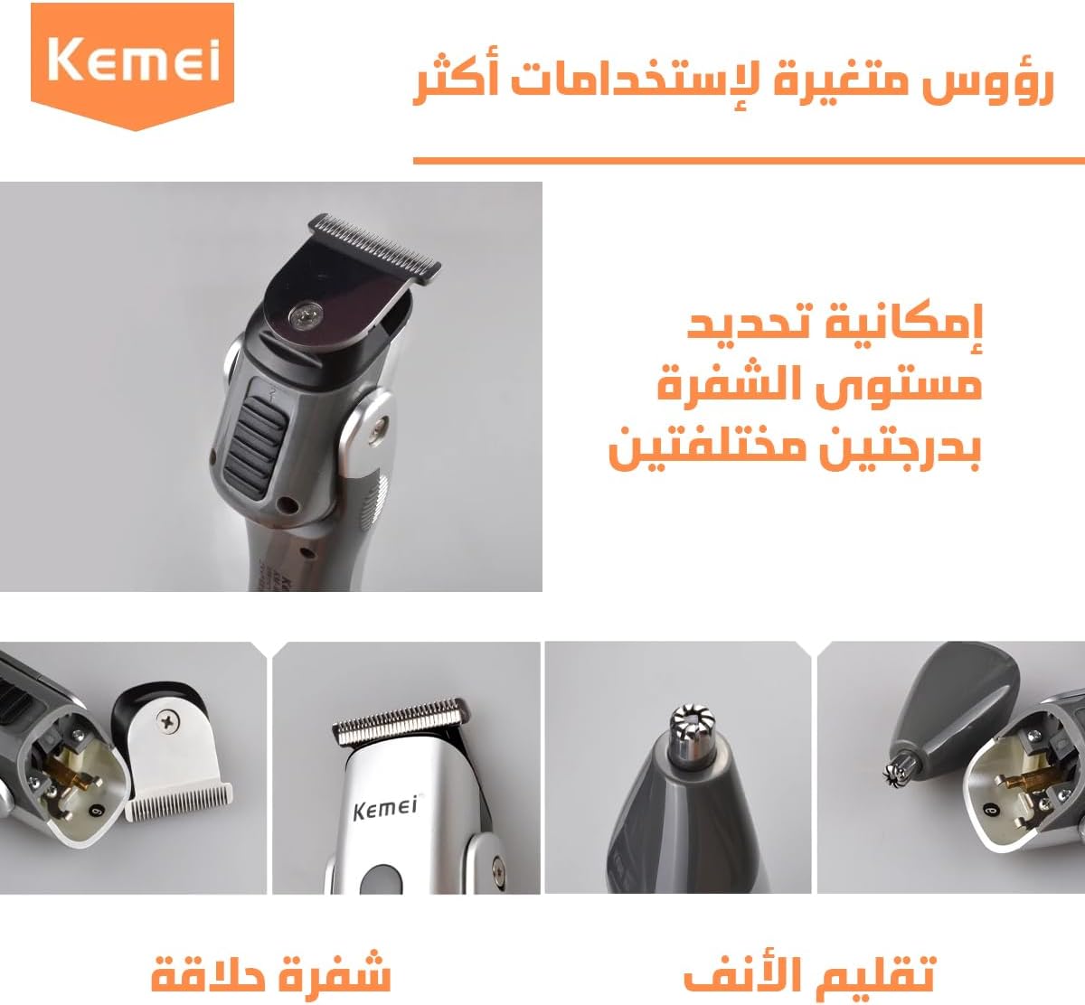 Versatile 8-in-1 Grooming Solution: The KEMEI Professional Hair Clipper is your all-in-one grooming tool, featuring a body groomer, precision trimmer, foil shaver, rotary nose & ear trimmer, and more, all in a single package.