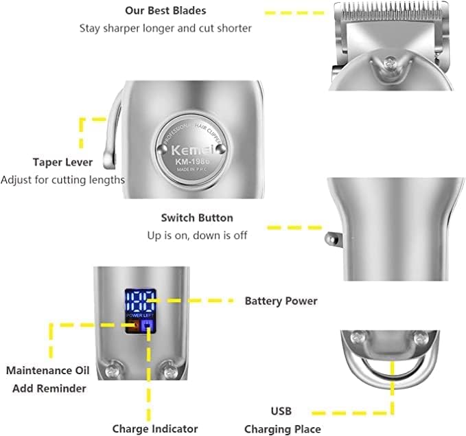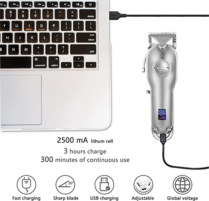 The Kemei KM-1974C ? Rechargeable Hair Clipper with Sculpting Head is the ideal machine for trimming and precision in the lines and designs you desire. With an innovative design and carbon blade, it gives your hair and beard the precision they need to shine. It is skin-friendly, and high-performance