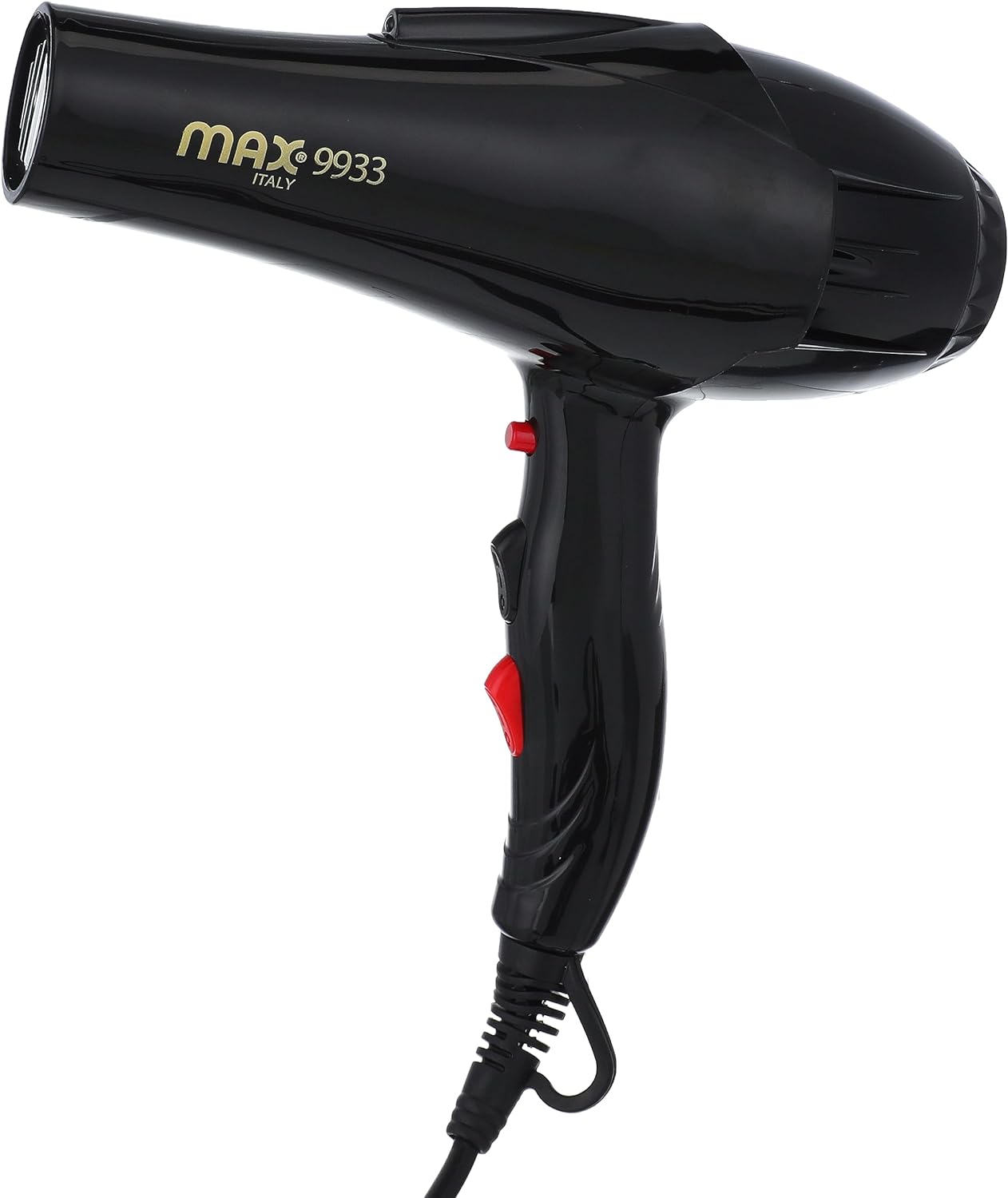 Max 9933 Italy Western style design Color and appearance New fashion Comfortable and hand-crafted, Large air volume with high heat high gloss plastic outer shell Heat resistant Silent design for dynamic balance Superior protection device for high temperature.