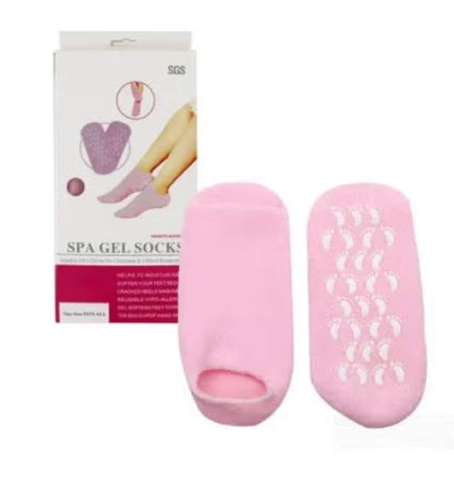 Spa Gel Socks provides intensive hydration treatment to moisturize and soften hard, dry, rough feet, toes, and heel skins.