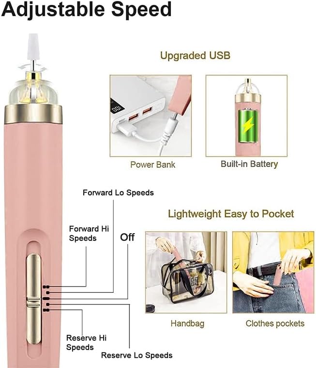 Quality Assurance and Service: You will get 1 x Nail Electric File, 5 x Nail Polish Heads, 1 x USB Charging Cable .