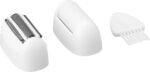 Multifunctional grooming device designed for gentle and efficient hair removal. It features three interchangeable heads that cater to different grooming needs, including facial hair trimming, body shaving, and precision grooming. The shaver is equipped with hypoallergenic blades that provide a smooth shave without irritation, making it suitable for sensitive skin. Its rechargeable battery ensures convenient, cordless use, making it an ideal choice for women seeking an all-in-one grooming solution.